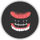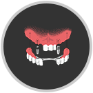 | Teilprothese mit Klammern an Restzahnbestand | Teilprothese auf Implantaten |